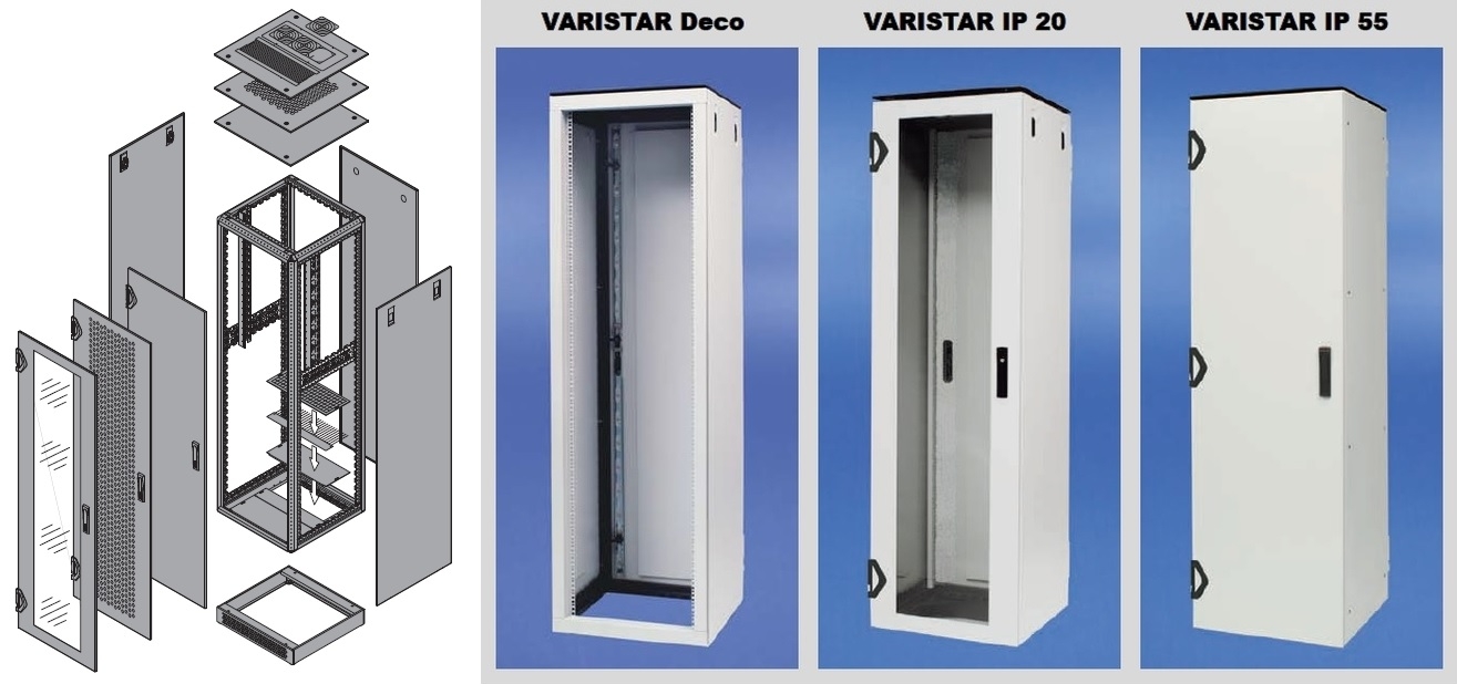 Seria szaf VARISTAR Electronics została specjalnie zaprojektowane dla ogólnego stosowania w zakresie ochrony urządzeń elektronicznych, które dedykowane są do montażu w szafach w oparciu o standard 19-cali. Cechą charakterystyczną tej serii szaf jest nowatorska konstrukcja rama nośnej dzięki czemu montaż różnych komponentów na zewnątrz (np. drzwi, ściany boczne itp.) jaki i wewnątrz (np. półki) szafy oraz elementów ekranowania EMC jest wyjątkowo prosty i nieskomplikowany. Z uwagi na rodzaj ramy szafy można podzielić na dwa wersje – „Slim-Line” o statycznej obciążalności granicznej do 400kg i „Heavy duty” o statycznej obciążalności granicznej do 800kg. Dostępne wysokości: 29…47 U (1400...2200 mm), szerokości: 600 /800 mm i głębokość: 300 / 600 / 800 mm. Oferowane są w dwóch kombinacjach kolorystycznych - całość w kolorze RAL7021 lub rama, dach i podstawa w kolorze RAL7021 a ściany w kolorze RAL7035. Dostępne różne rodzaje wentylacji, zarówno pasywne jak i aktywne. Do szaf tej serii dostępny jest szeroki asortyment dodatkowych akcesoriów.