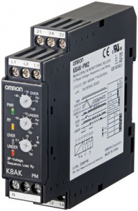 Przekaźnik K8AK-PM jednocześnie monitoruje przepięcia, podnapięcia, sekwencję faz i utratę fazy w trójfazowych trójprzewodowych lub czteroprzewodowych źródłach zasilania - jako jedno urządzenie. Przekaźnik ten ma przełącznik ustawienia dla trójfazowego trójprzewodowego lub trójfazowego czteroprzewodowego źródła zasilania.