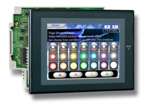 Panel operatorski HMI z 10-calowym ekranem połączony ze sterownikiem PLC i modułem sieciowym.